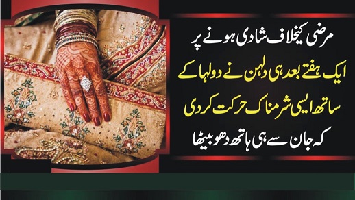 مرضی کے خلاف شادی کرنے پر لڑکی نے خاوند کو کالا پتھر پلا دیا، نوجوان نشتر ہسپتال میں دم توڑ گیا، ورثاءنے خود کشی کا ڈھونگ رچا کر کارروائی سے انکار کر دیا۔ تھانہ منکیرہ پولیس اطلاع کے باوجود موقع پر نہ پہنچ سکی۔ روزنامہ نوائے وقت کے مطابق نواحی علاقہ گوندو کے 24سالہ محمد بشیر کی ایک ہفتہ قبل شادی ہوئی، لڑکی شادی پر رضا مند نہ تھی‘ مرضی کے خلاف شادی ہونے پر اپنے خاوند محمد بشیر کو کولڈ ڈرنک میں کالا پتھر ملا کر پلا دیا جس سے بشیر کی حالت غیر ہو گئی‘ تشویشناک حالت میں نشتر ہسپتال ملتان منتقل کیا گیا لیکن وہ جانبر نہ ہو سکا‘ ورثاءنے رقبے کے لالچ میں وقوعہ کو خود کشی کا رنگ دیکر کارروائی سے انکار کر دیا ۔